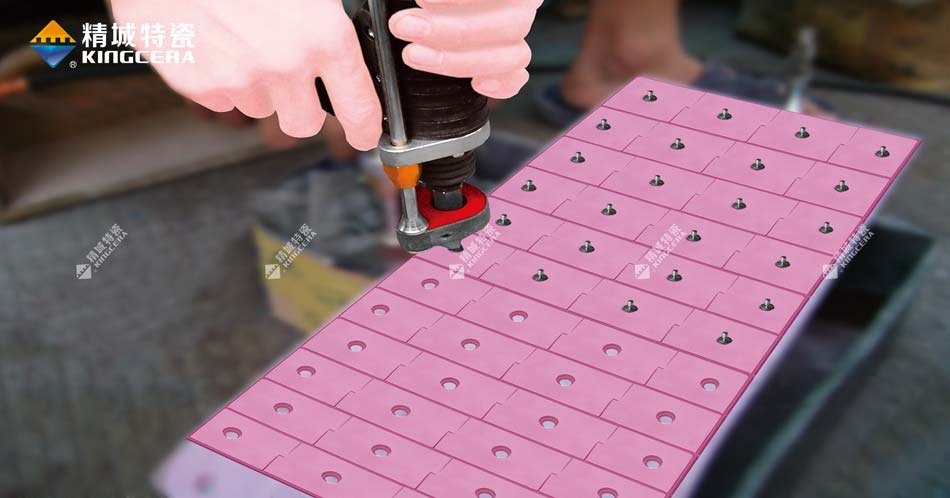 普通的陶瓷粘膠耐溫范圍在150℃以下,而精城研發的無機粘膠可以將這個耐溫范圍提升到350℃。如果溫度超過350℃且不高于500℃,我們可以用螺柱焊接安裝陶瓷。超過500℃則建議選用燕尾卡槽安裝陶瓷。